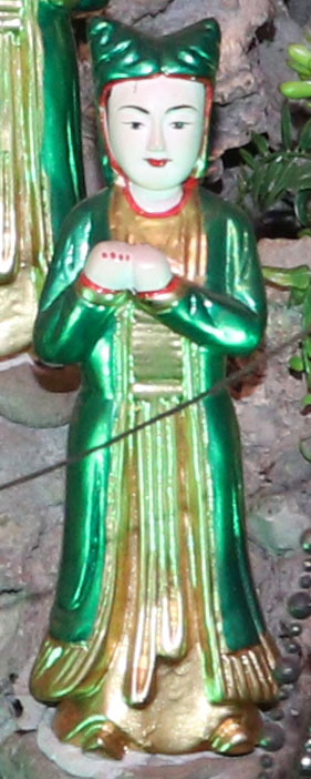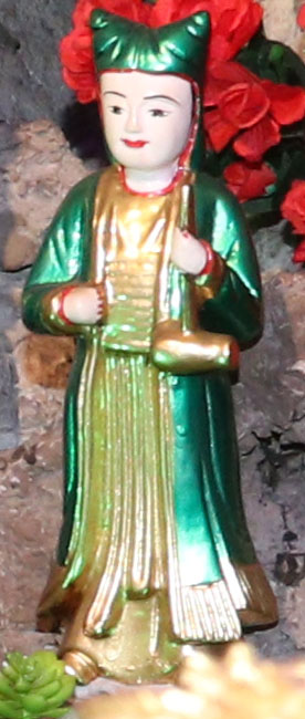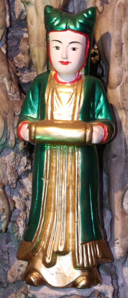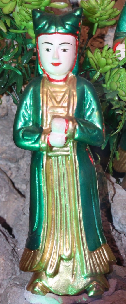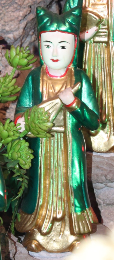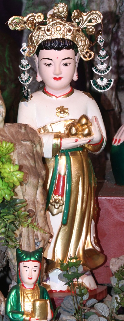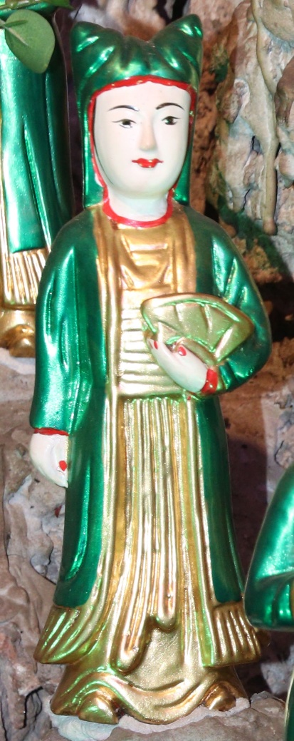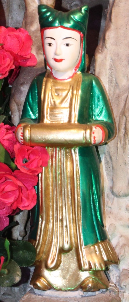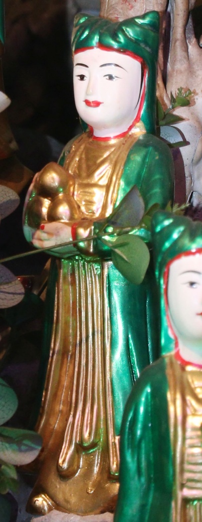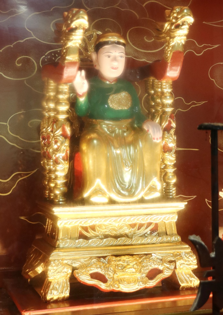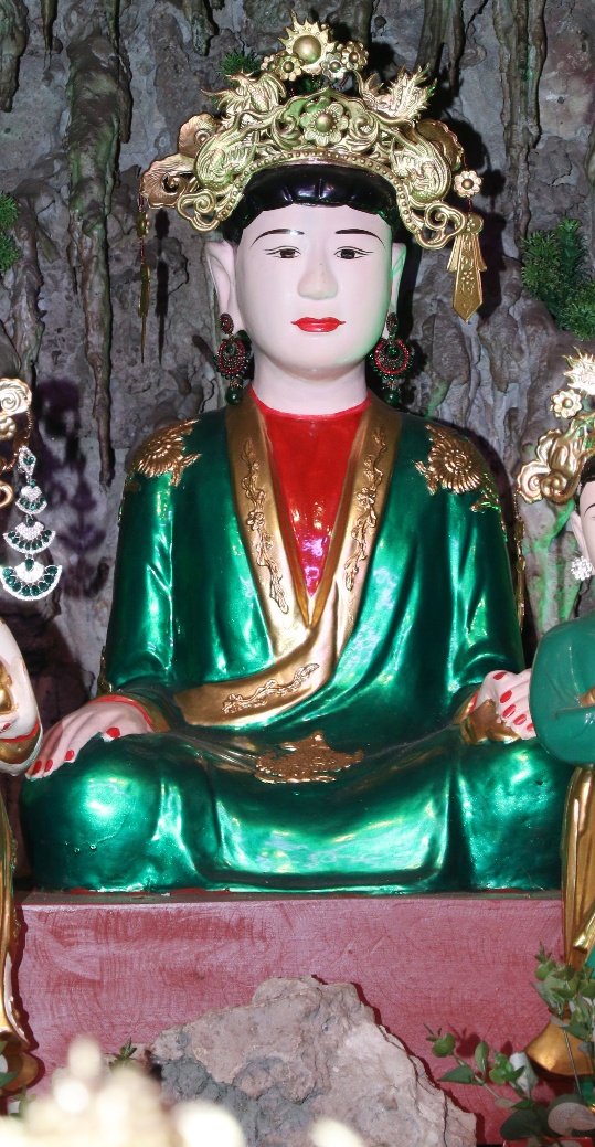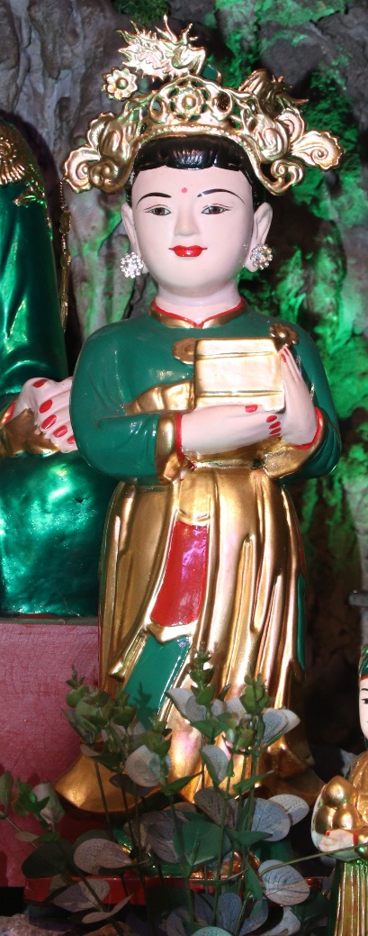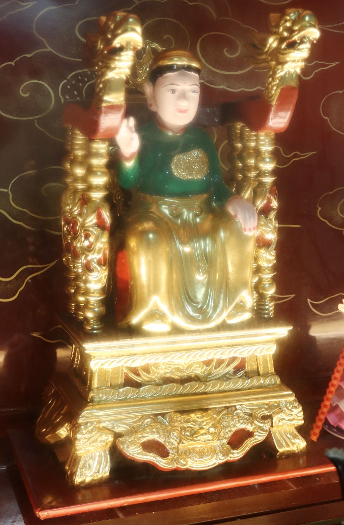 Theo lưu truyền trong dân gian ở vùng đất Bưởi cho hay: Bà giáng thế hạ trần vào nhà họ Lý, tên là Lý Thị Ngọc Ba, sinh quán ở đất Quý Hương, An Thái, Vụ Bản, Nam Định, sau đó trở thành vị nữ tướng, tương truyền chầu là người khảng khái chính trực, ra trận nếu có kẻ nào làm sai phép quân thì “tiền trảm hậu tấu” (chém đầu kẻ đó trước sau rồi mới về tâu với vua), nhưng đã có công giúp vua ra dẹp giặc và trấn giữ ở vùng Hà Trung, Thanh Hóa nên được sắc phong là Chiêu Dung Công Chúa. Sau này khi trở về Thiên Đình, bà được giao quyền khâm sai Tứ Phủ (từ Thủy Phủ cho tới Thiên Cung), Tam Tòa, biên chép sổ Thiên Đình, quyền cai bản mệnh gia trung (vậy nên có khi người ta còn gọi là Bà Thủ bản Mệnh). Có khi chầu lại được coi là vị chầu bà giữ sổ Tứ Phủ, coi kho ngân xuyến, kế cận bên mẫu Liễu Hạnh ở đất Phủ Dầy. Đôi khi thanh nhàn, chầu thường cùng các nàng tiên dạo chơi khắp chốn, từ quê hướng ra kinh thành, vân du khắp mọi nơi.